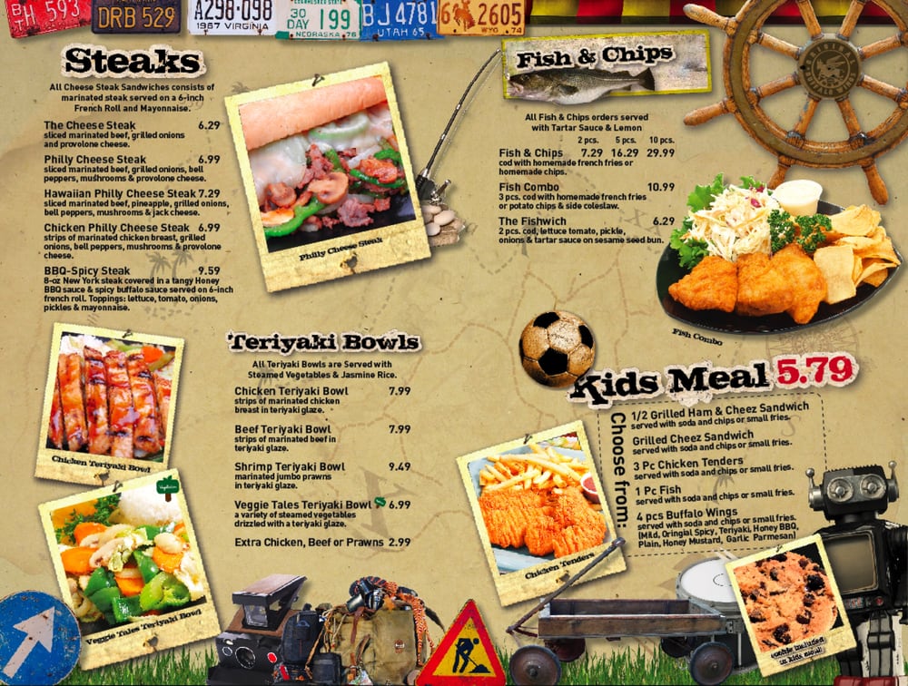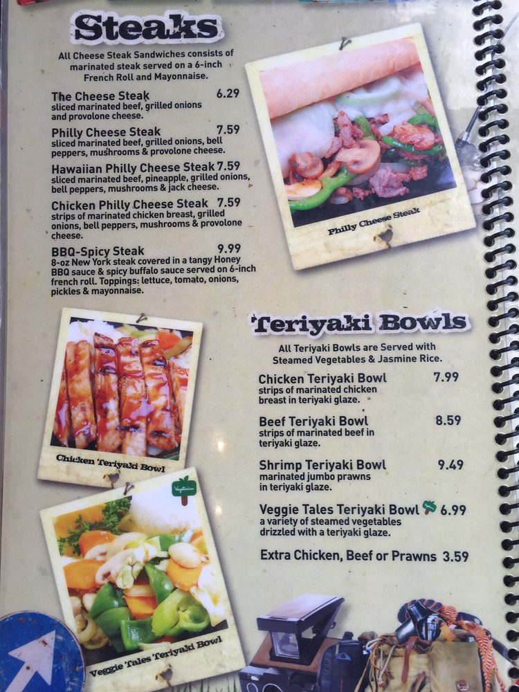 Sliced marinated beef, pineapple, grilled onions, bell peppers, mushrooms, and Jack cheese on a six-inch french roll with mayonnaise.